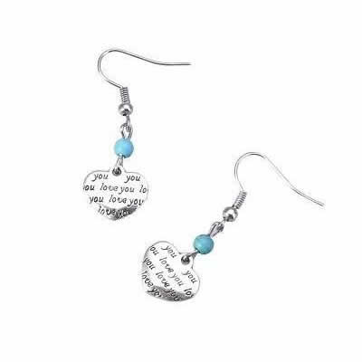 ラブメッセージターコイズステンレスピアス/1個販売 ハート 英語 イニシャル サージカルステンレス316L トルコ石 インディアンジュエリー メンズ レディース ステンレスピアス 揺れる フックピアス アメリカンピアス 天然石 ボヘミアン 20G 20ゲージ アンティーク