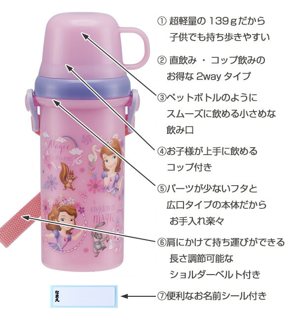 水筒 プラスチック 直飲み コップ 2way ちいさなプリンセスソフィア 480ml 子供 器量 ( 食洗機対応 幼稚園 保育園 ソフィア プリンセス キャラクター 軽量 直飲み&コップ付き 直飲みコップ付 子供用 ボトル ダイレクトボトル )【3980円以上送料無料】