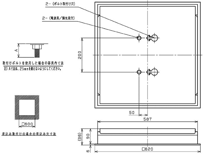 ※二次電圧が150Vを超えますので、100V入力でのご使用でもアース工事は確実に行ってください ※断熱材施工不可 ※傾斜天井・柔らかい天井には取付ないでください。