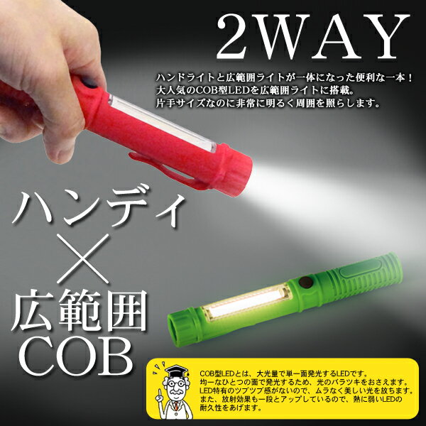 先端照射ライト×広範囲を照らすCOBライト COBハイパワースティック2WAYライト 目的にあわせた多彩な使い方が可能! ハンドライトと広範囲ライトが一体になった便利な一本!大人気のCOB型LEDを広範囲ライトに搭載。
