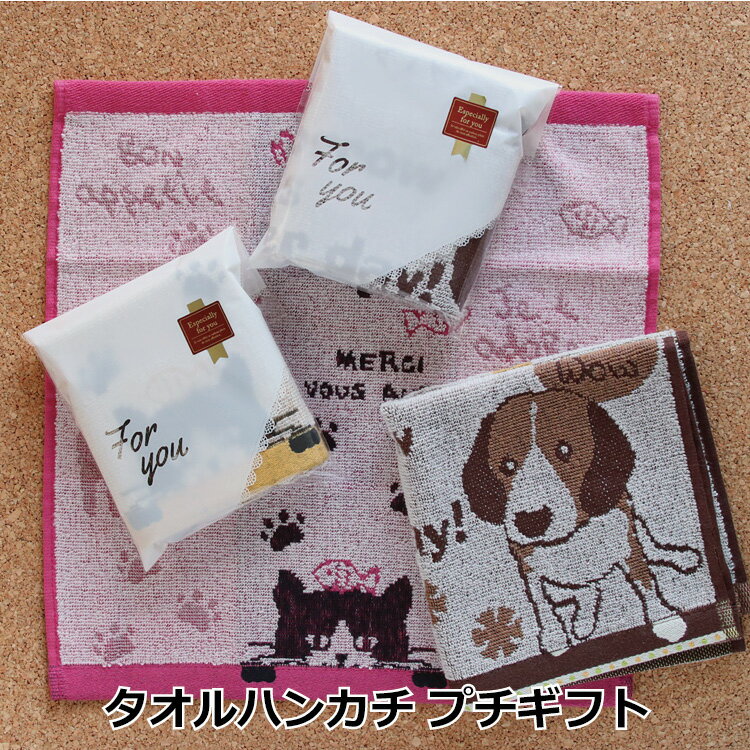 わんにゃんジャガードハンドタオルプチギフト(色柄アソート)★1枚税込150円★(W051-gift) ミニタオル ハンカチタオル ハンドタオル ギフト 犬 猫 プレゼント