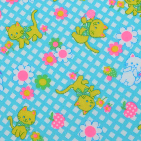 friendly ( ブルー ) 青 水色 かわいい 猫柄 綿100 生地 チェック 花柄 きのこ レトロ 子猫 国産 ファブリック 手芸 女の子 ポップ ソーイング 入園 入学 手作り ハンドメイド 素材 布 パッチワーク キャット サイケ エコバッグ