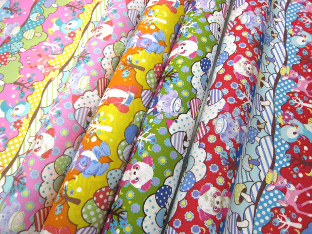 カラフルアニマルボーダー パンダ バンビ 小鳥 キャラクター柄 キノコ きのこ